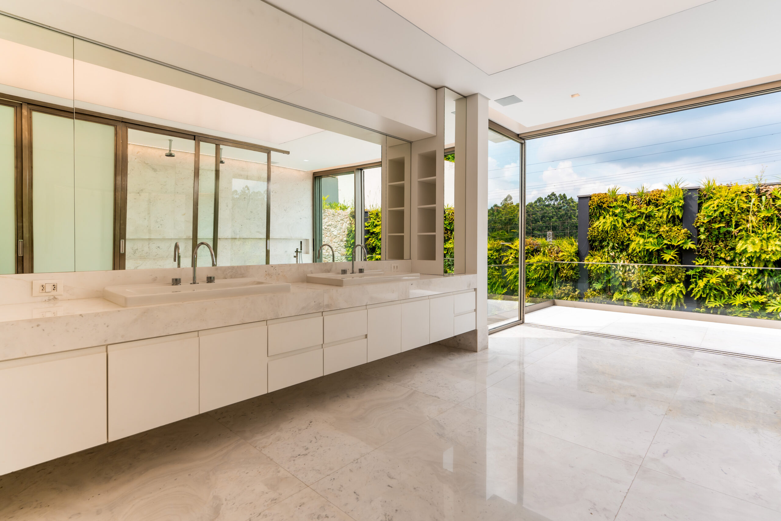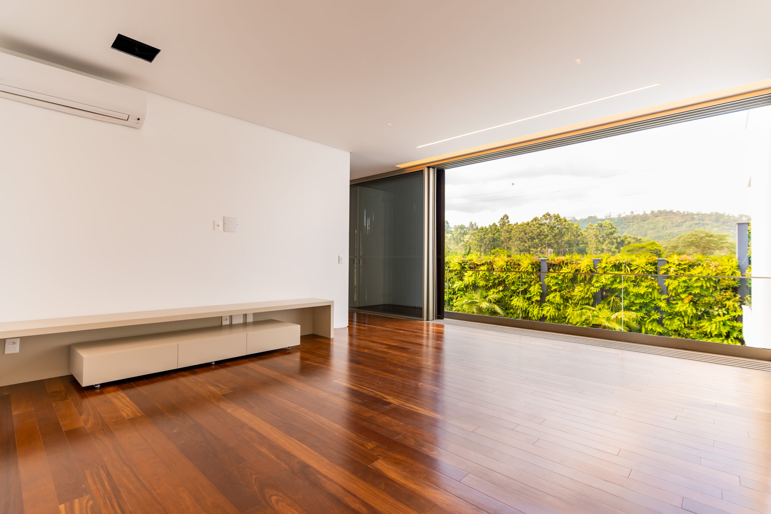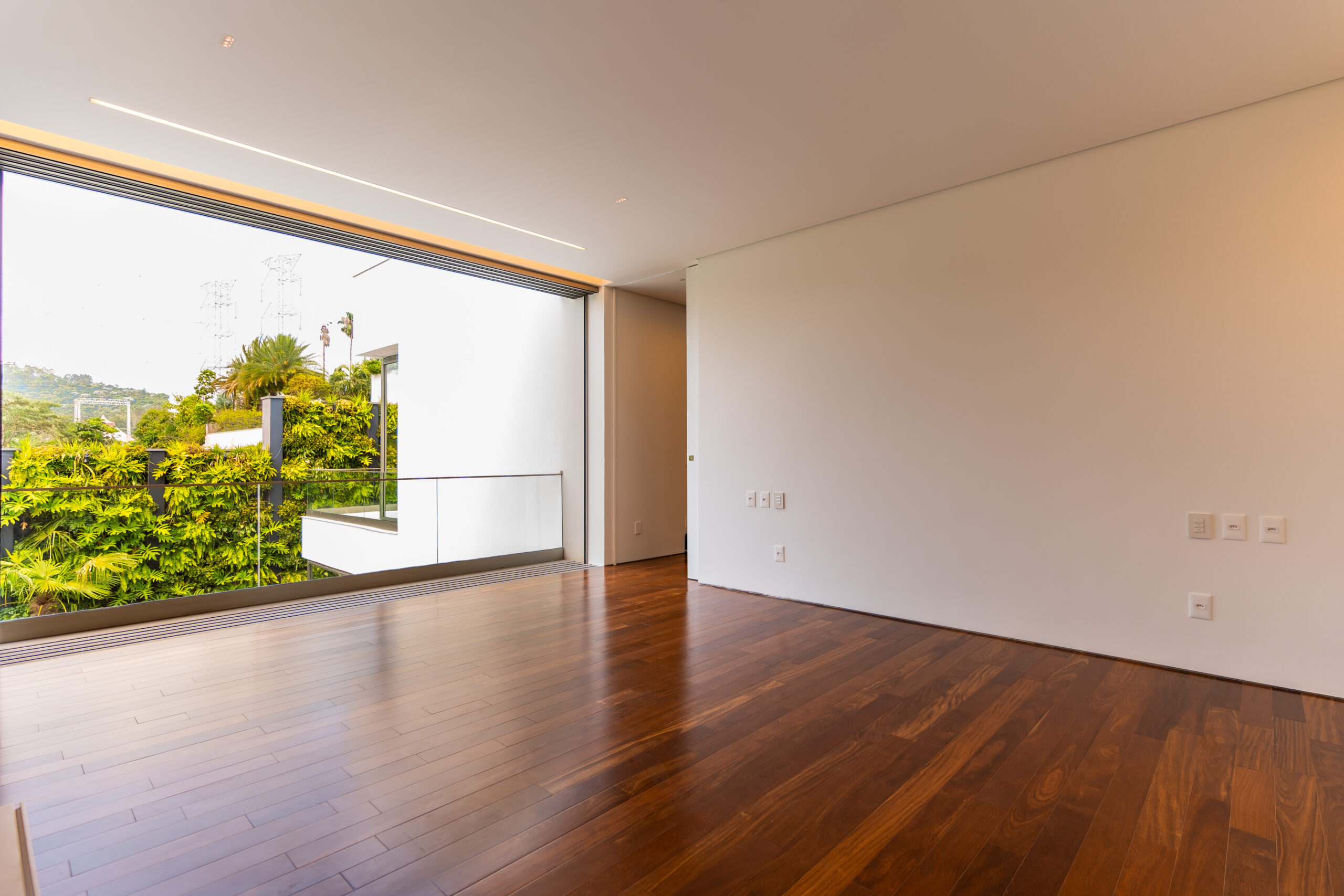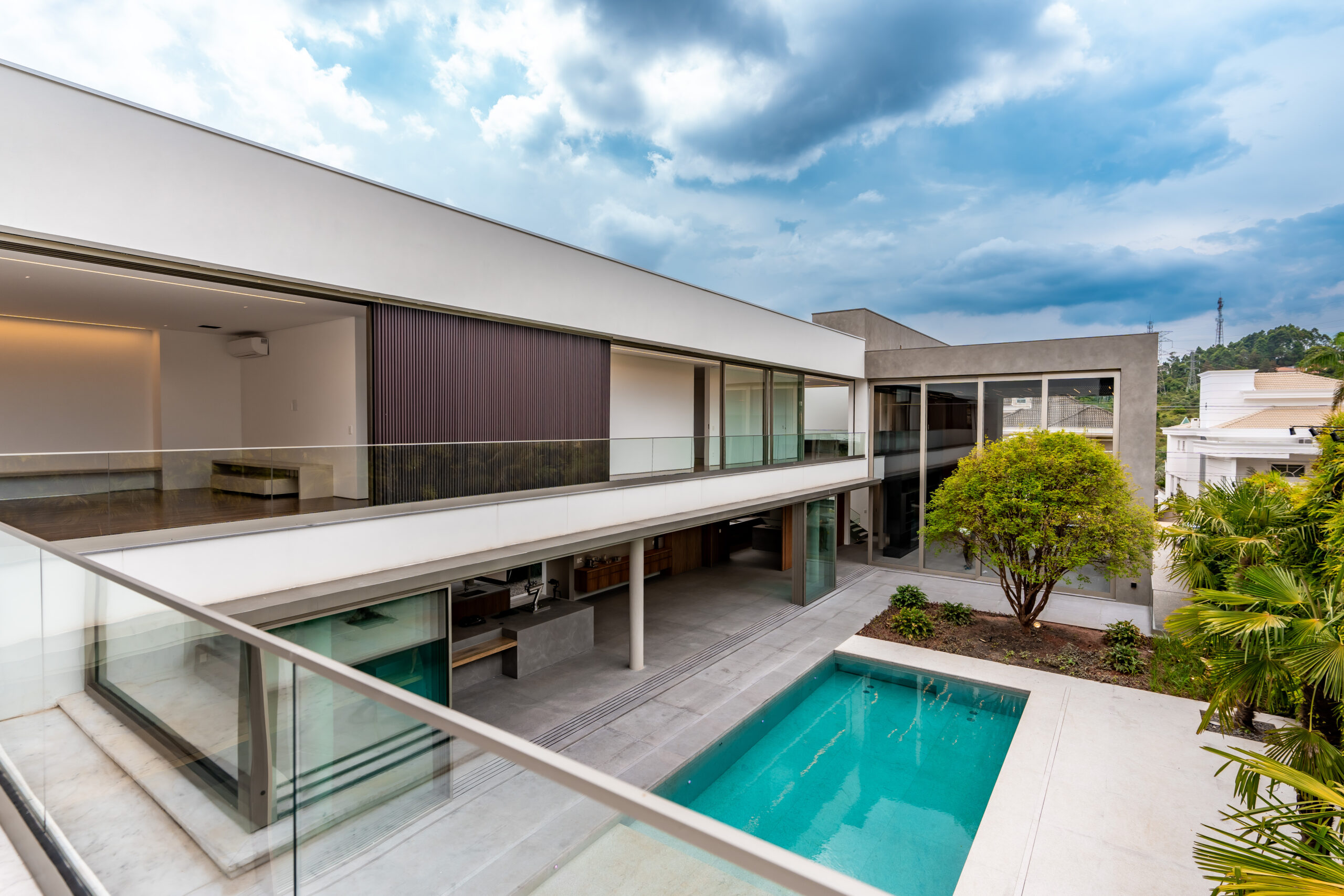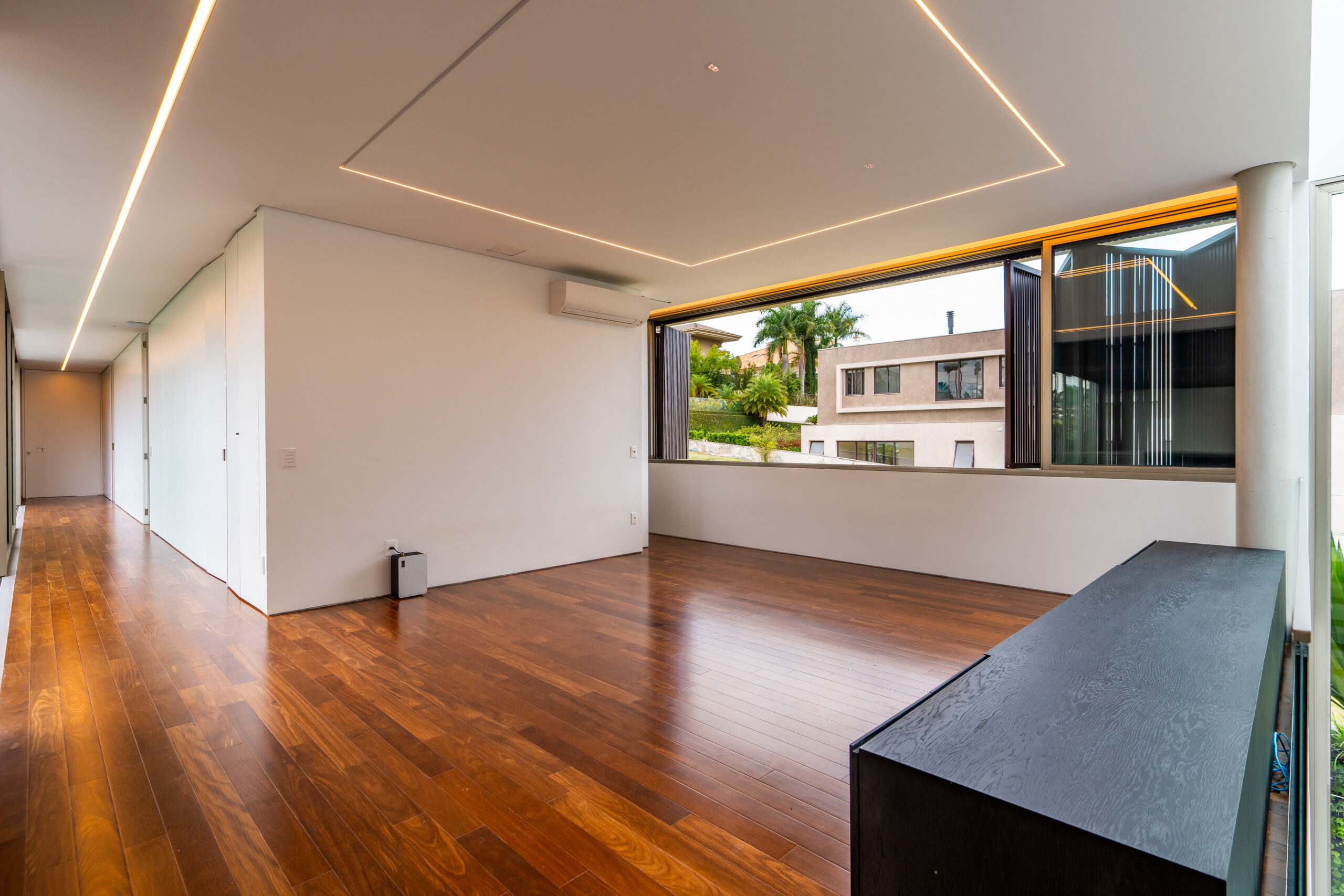 Ligado a ele, a sala da família é ampla, clara e arejada, com vista para o pé direito duplo da sala e visualização da piscina e área de lazer. Além do amplo espaço para assistir TV, a sala da família contém escritório reservado, roupeiro e copa com micro-ondas, filtro e frigobar.