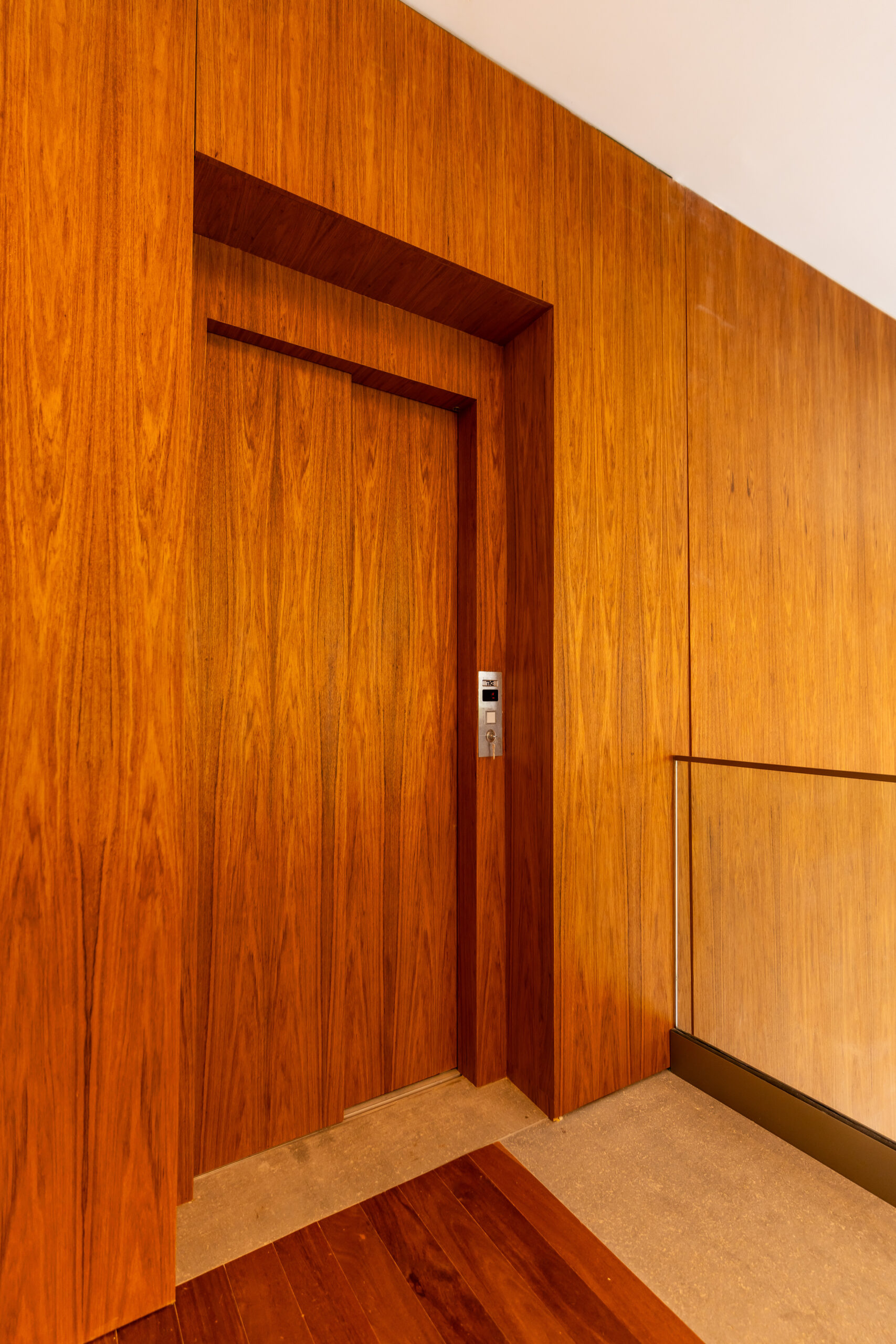 O elevador é todo ele revestido, sob medida, em madeira natural.